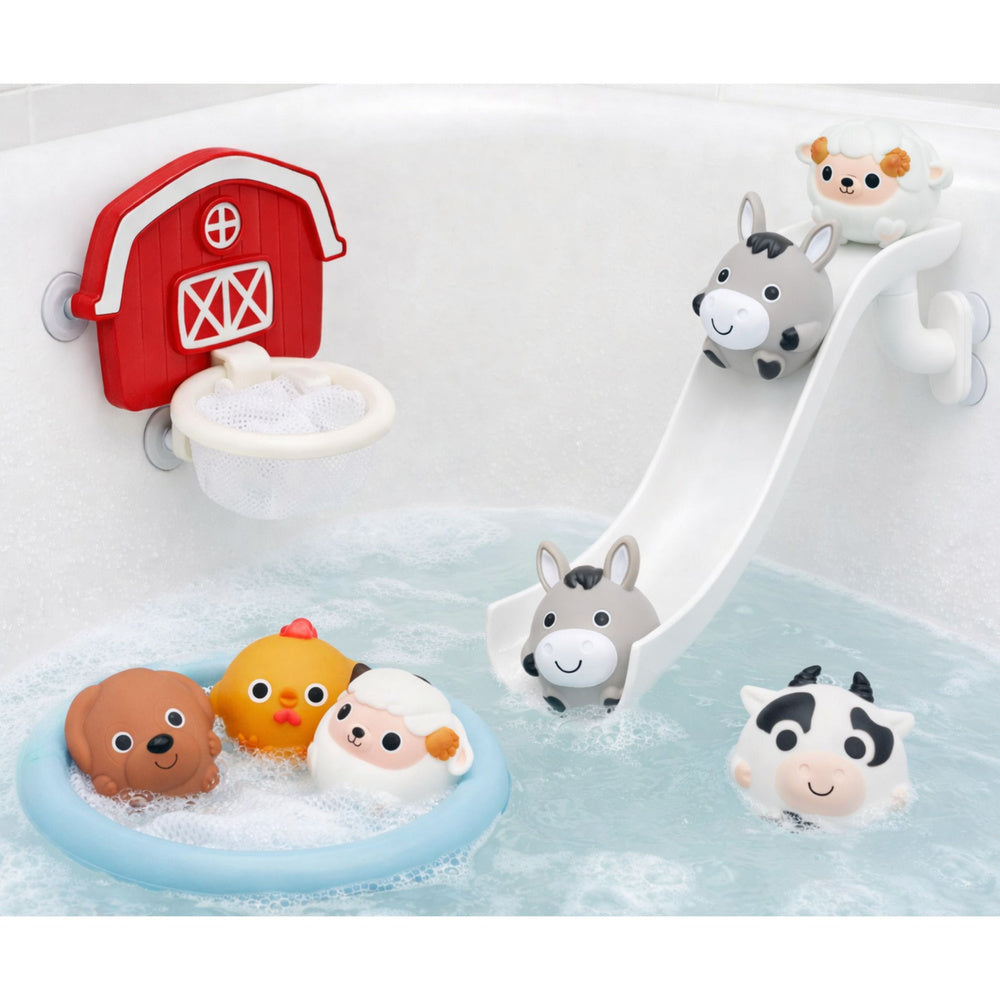 Představte si, jak vaše dítě s nadšením spouští veselá zvířátka z farmy po skluzavce přímo do vody, chytá je síťkou a hází do košíku. Každé koupání se promění v dobrodružnou hru plnou smíchu a radosti. Kulatá zvířátka se kutálí, plavou a poskakují po vodě, což probouzí dětskou fantazii a zvědavost. Čas strávený ve vaně už nebude jen o mytí, ale o zábavě, kterou si vaše dítě zamiluje.