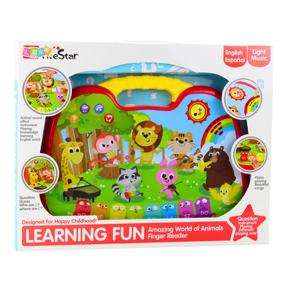 Panel je vyroben z plastu a disponuje dotykovým displejem se svítícími ikonami. Nabízí přepínání mezi angličtinou a španělštinou, režim klavíru se solmizačními tóny (do re mi fa sol la si do) a funkci hraní na různé nástroje, která dětem umožňuje objevovat různé zvukové barvy. V režimu kvízu panel pokládá otázky typu "Kdo jsem?" nebo "Kde jsem?", což podporuje logické myšlení, koncentraci a paměť. Panel přehrává zvuky zvířat a vzdělávací hlášky, díky nimž děti poznávají přírodní svět.