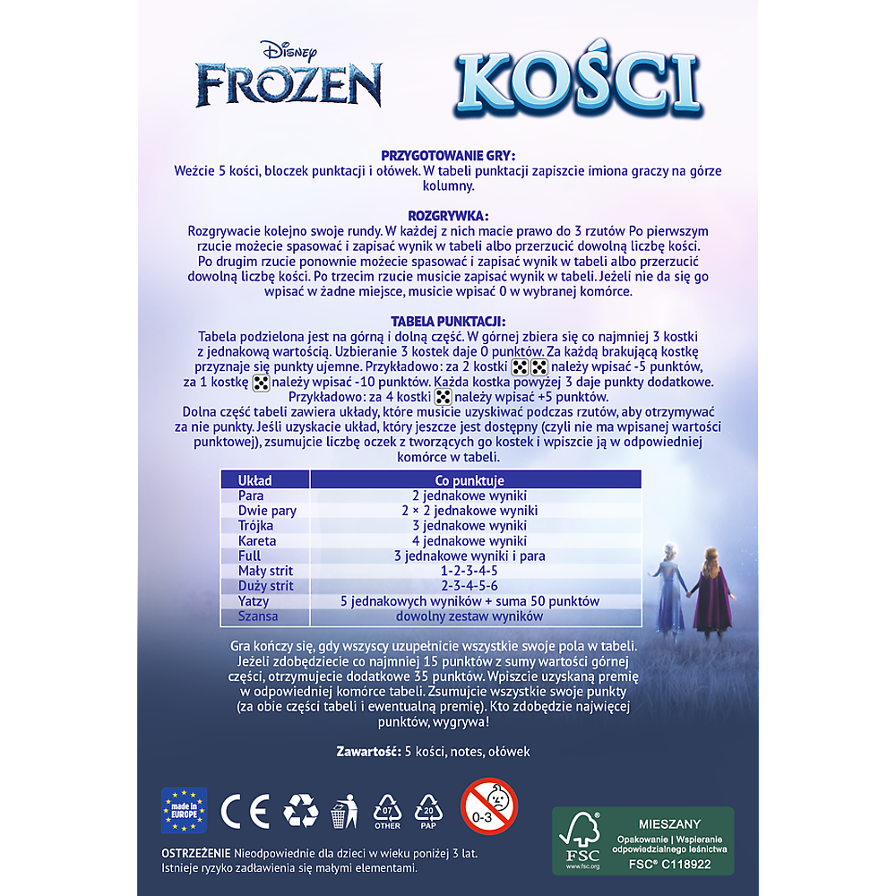 Klasická kostková hra v pohádkovém vydání potěší všechny fanoušky animovaného filmu Frozen. Zkuste své štěstí a hrajte o nejvyšší možné výsledky ve správných kombinacích. Skvělá zábava pro celou rodinu, která zaručí hodiny napínavé hry.