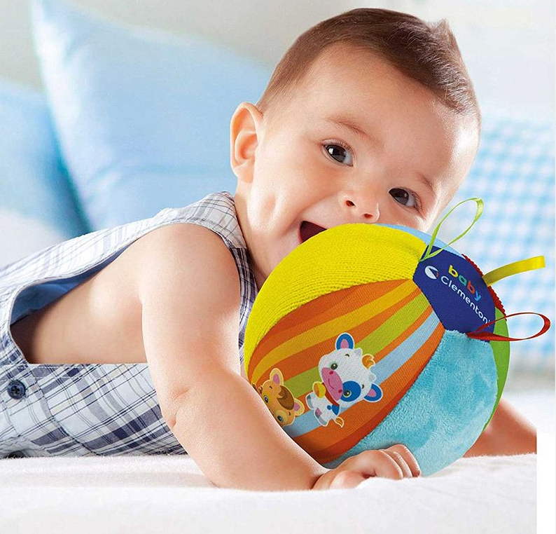 Míček je vybaven oblíbenými visačkami, které děti rády tahají a zkoumají. Při zatřesení míčkem se ozývají zábavné zvuky, které učí děti vztahu příčiny a následku. Hračka podporuje rozvoj manuálních dovedností, motorické koordinace a smyslů – sluchu, hmatu i zraku.