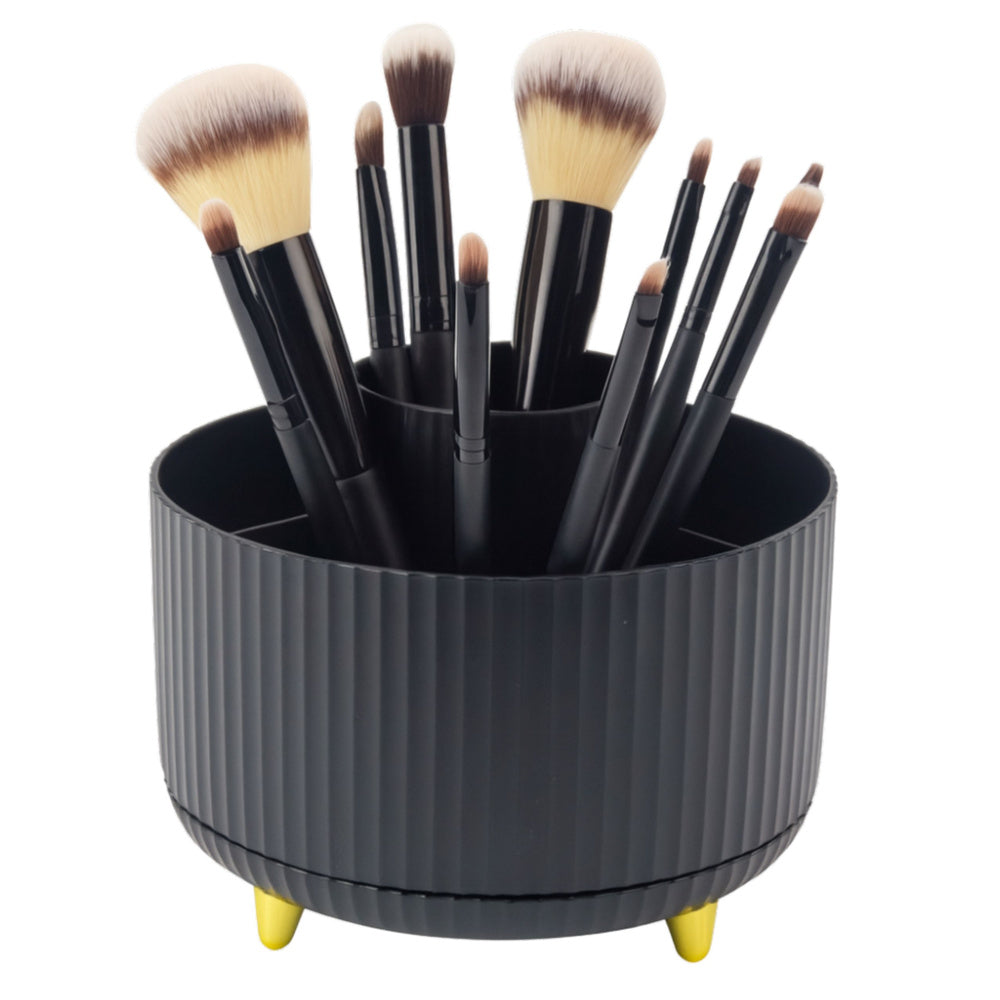 Stylový otočný organizér na kosmetické štětce a rtěnky je praktickým řešením pro udržení pořádku ve vašich kosmetických potřebách. Díky robustní základně s rotací o 360° máte vždy rychlý a pohodlný přístup ke všem uloženým produktům. Stačí organizér lehce otočit a máte po ruce vybraný produkt, aniž byste museli přesouvat ostatní položky.