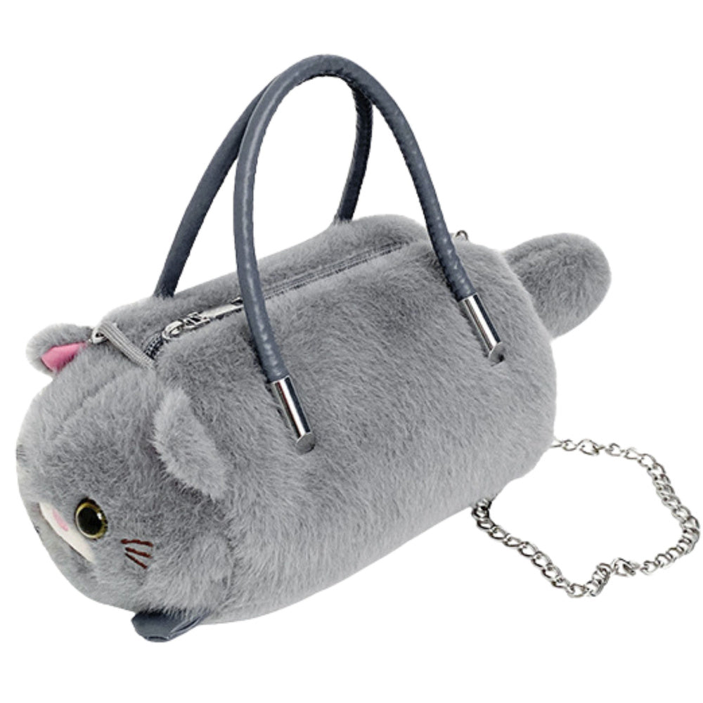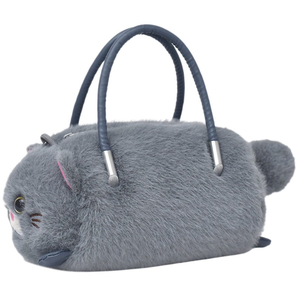 Plyšová kabelka ve tvaru roztomilé kočičky je jedinečný doplněk, který spojuje praktičnost s originálním a rozkošným vzhledem. Měkká, příjemná na dotek plyšová látka jí dodává hřejivý a přátelský charakter, zatímco pečlivě zpracované detaily – jako jsou ouška, oči a čumáček – z ní dělají malého plyšového kamaráda.