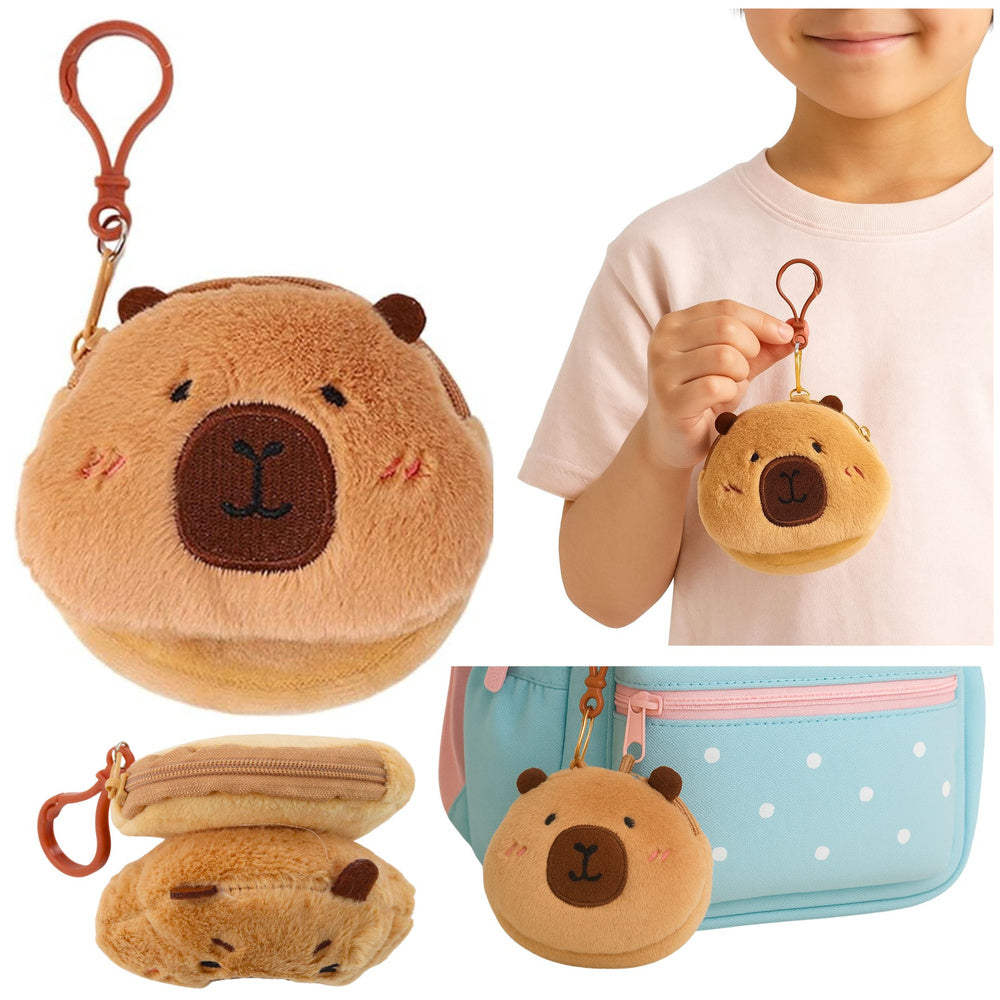 Roztomilá plyšová peněženka ve tvaru kapybary je skvělým dárkem pro děti i milovníky těchto oblíbených zvířátek. Vyrobená z měkkého, příjemného materiálu slouží perfektně jako pouzdro na drobné mince, šperky, malé doplňky nebo jiné poklady. Díky praktickému zipovému uzávěru a karabině ji můžete snadno připevnit k batohu, kabelce, opasku nebo klíčům.