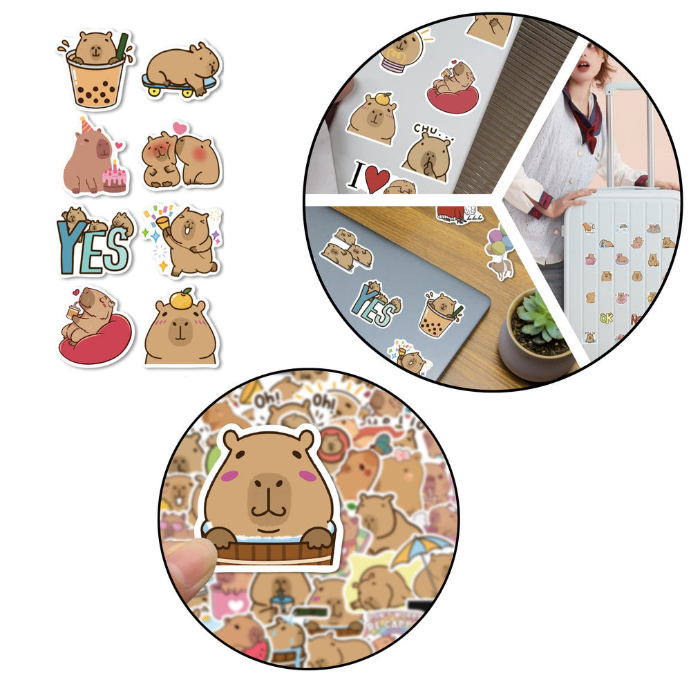 Sada 50 papírových samolepek s roztomilým motivem kapybary je ideální volbou pro milovníky kreativního papírnictví a personalizace každodenních předmětů. Samolepky zobrazují kapybary v různých stylech – od vtipných po roztomilé, často doprovázené delfíny a pastelovými detaily, což je činí mimořádně atraktivními pro děti i dospělé.