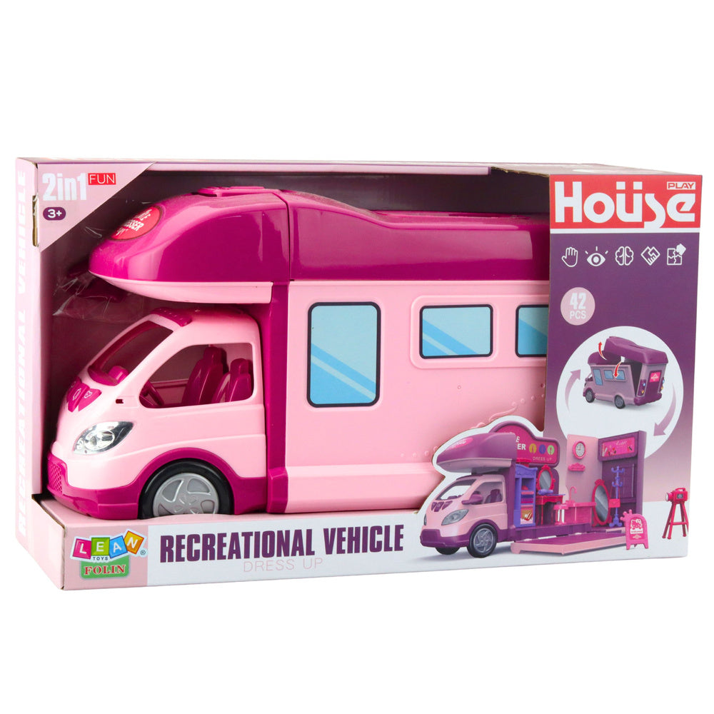 Sada obsahuje 42 kusů praktického nábytku a doplňků, jako je šatní skříň, toaletní stolek, zrcadlo, umyvadlo, věšák a kamera. Tyto prvky umožňují dětem vyzdobit interiér karavanu podle vlastních představ a rozvíjet kreativitu. Skládací design usnadňuje skladování a přepravu, zatímco praktická rukojeť umožňuje vzít karavan kamkoliv s sebou. Skvělá volba pro děti, které milují hraní s panenkami a sní o vlastním cestovním domově.