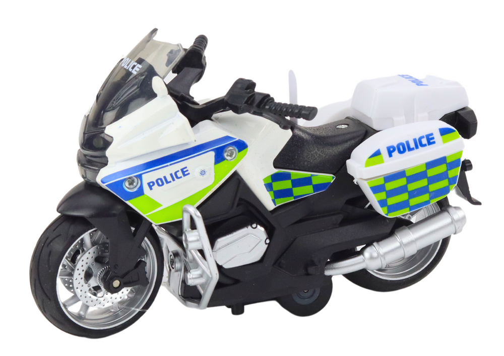 Motorka je vyrobena z kvalitního plastu a disponuje frikčním pohonem, který zajišťuje plynulý a realistický pohyb bez potřeby baterií. Kompaktní rozměry umožňují snadnou manipulaci a hru jak doma, tak venku. Produkt je certifikován podle normy EN71 a splňuje všechny bezpečnostní požadavky.