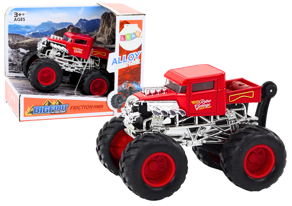 Auto je vyrobeno z kombinace kovu a plastu, což zajišťuje odolnost a dlouhou životnost. Frikční pohon umožňuje snadné použití bez nutnosti baterií. Velká terénní kola a robustní konstrukce jsou navrženy pro realistickou hru a odolávají náročnému používání.