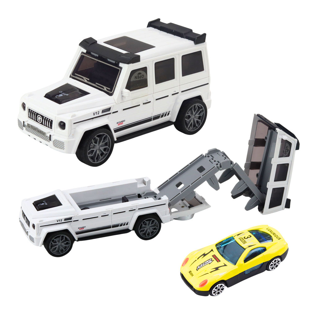 Terénní auto s ukrytým autíčkem je unikátní hračka, která kombinuje klasickou zábavu s jízdou a překvapivou funkcí. Tento realisticky zpracovaný vůz disponuje skládacím mechanismem, který proměňuje auto v dráhu s katapultem pro menší autíčko. Děti si tak mohou hrát různými způsoby – řídit velké auto, aktivovat katapult nebo závodit s menším vozidlem.