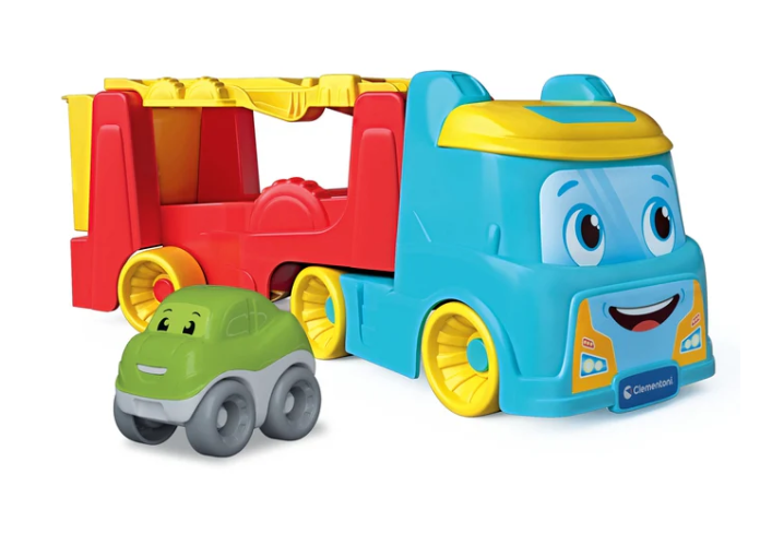 Barevný transportér Baby Clementoni se promění v přívěs pro přepravu mini autíček a nabídne dětem spoustu zábavy. Přívěs se snadno přemění na závodní dráhu, po které autíčko sjíždí, závodí a dokonce se převrací a dělá zábavné kotrmelce. Tato hračka přirozeně probouzí dětskou zvědavost a podporuje aktivní zapojení do hry.