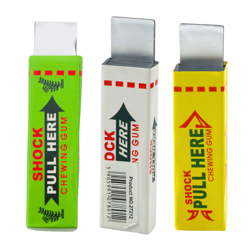 Tato zdánlivě obyčejná krabička žvýkaček skrývá vtipné překvapení. Vypadá jako skutečná žvýkačka, ale každý, kdo vytáhne vyčnívající „tyčinku", dostane lehký elektrický šok. Efekt překvapení je zaručený! Díky realistickému vzhledu je tento gadget perfektní vtip na party, dárek pro kamarády nebo zábavný trik.
