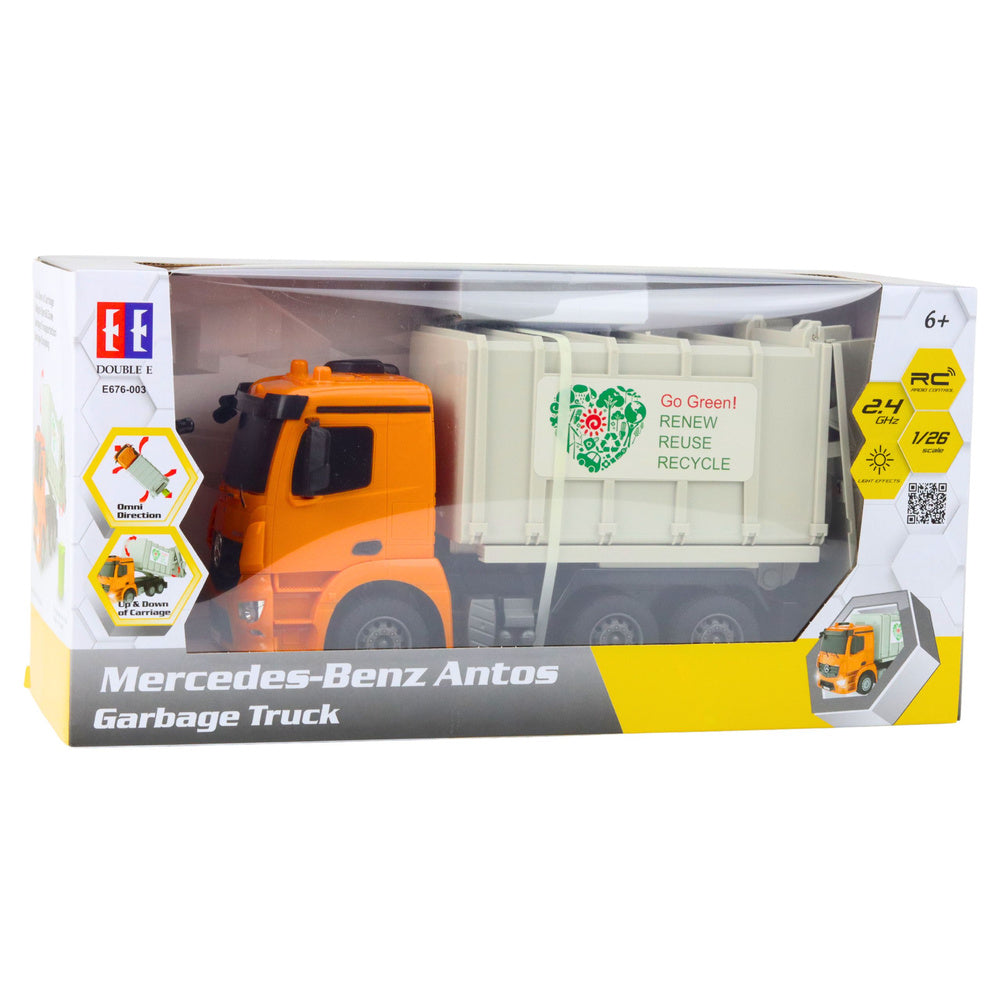 RC popelářský vůz Mercedes-Benz Antos v měřítku 1:26 je realistický model, který dětem umožní objevovat fascinující svět komunálních vozidel. Oficiálně licencovaný Mercedes-Benz zaujme věrným zpracováním detailů, robustní konstrukcí a funkcemi, které děti vtáhnou do každodenního provozu skutečného popelářského vozu. Je to ideální hračka pro rozvoj fantazie, manuální zručnosti a odpovědného přístupu k životnímu prostředí.