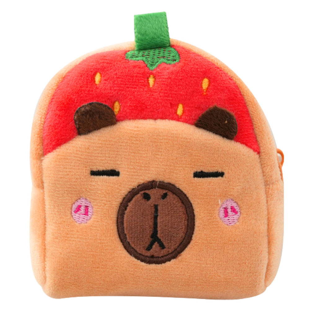 Roztomilá plyšová peněženka ve tvaru kapybary s motivem červené jahody je dokonalým doplňkem pro děti i milovníky roztomilých a měkkých doplňků. Vyrobená z měkkého, příjemného plyše je lehká, hebká a bezpečná pro každodenní používání. Díky kompaktním rozměrům 9,5 × 8 cm se perfektně vejde do dětské ručičky, kapsy, batohu nebo kabelky.