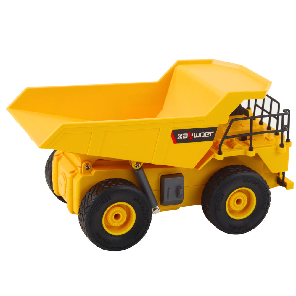 Sklápěč je vybaven 9kanálovým ovládáním a Li-ion baterií 3.7V pro dlouhou dobu hry. Dálkový ovladač vyžaduje 2x AA baterie 1.5V (nejsou součástí balení). Model disponuje funkcemi jízdy ve všech směrech, samovyklápění, světelnými efekty a rotací o 360°. Žlutá barva a realistické provedení z kvalitního plastu zajišťují odolnost a autentický vzhled stavebního vozu.