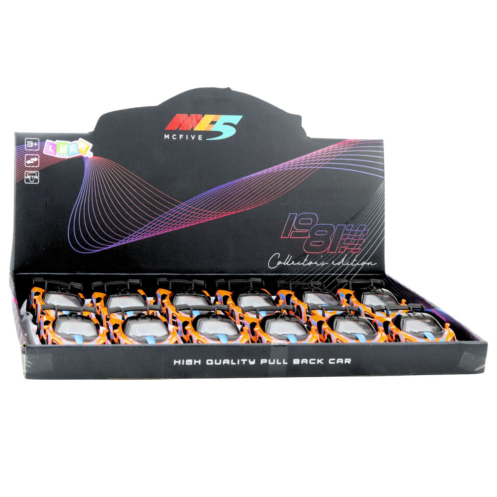 Auto je vybaveno zpětným natahováním – po lehkém zatažení dozadu se energicky rozjede vpřed, což umožňuje vzrušující závody. Materiálové provedení kombinuje kovovou karoserii s plastovými prvky pro optimální poměr kvality a bezpečnosti. Sportovní vzhled s oranžovou barvou doplněnou modrými a černými detaily činí z modelu atraktivní hračku i sběratelský kousek.