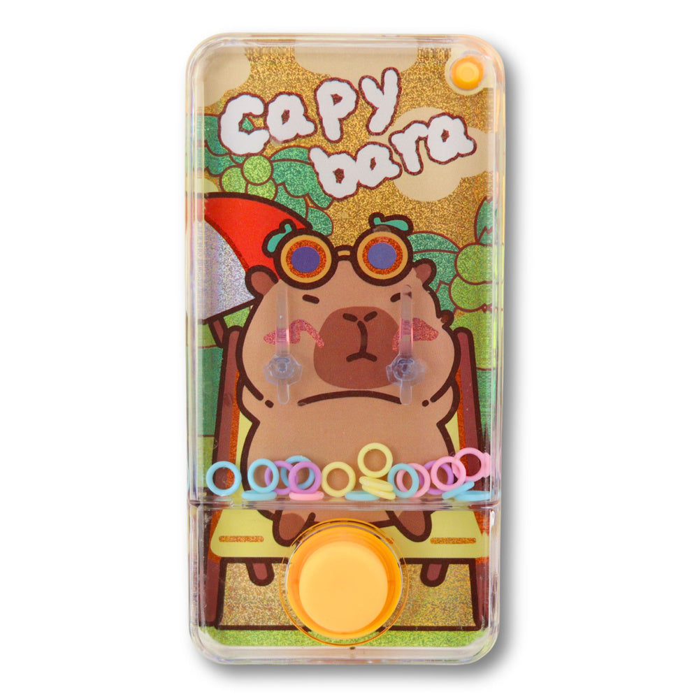 Vodní arkádová hra s motivem roztomilé kapybary je klasická zručnostní hračka, která děti baví a zároveň rozvíjí jejich jemnou motoriku. Hra spočívá v tom, že dítě stisknutím tlačítek vytváří proud vody, který zvedá malé kroužky a snaží se je nasadit na odpovídající kolíčky. Jednoduchý, ale poutavý mechanismus motivuje k opakované hře a pomáhá rozvíjet trpělivost a koordinaci ruky a oka.